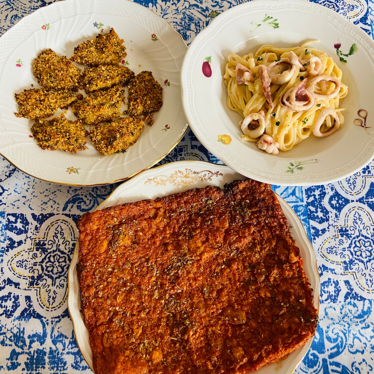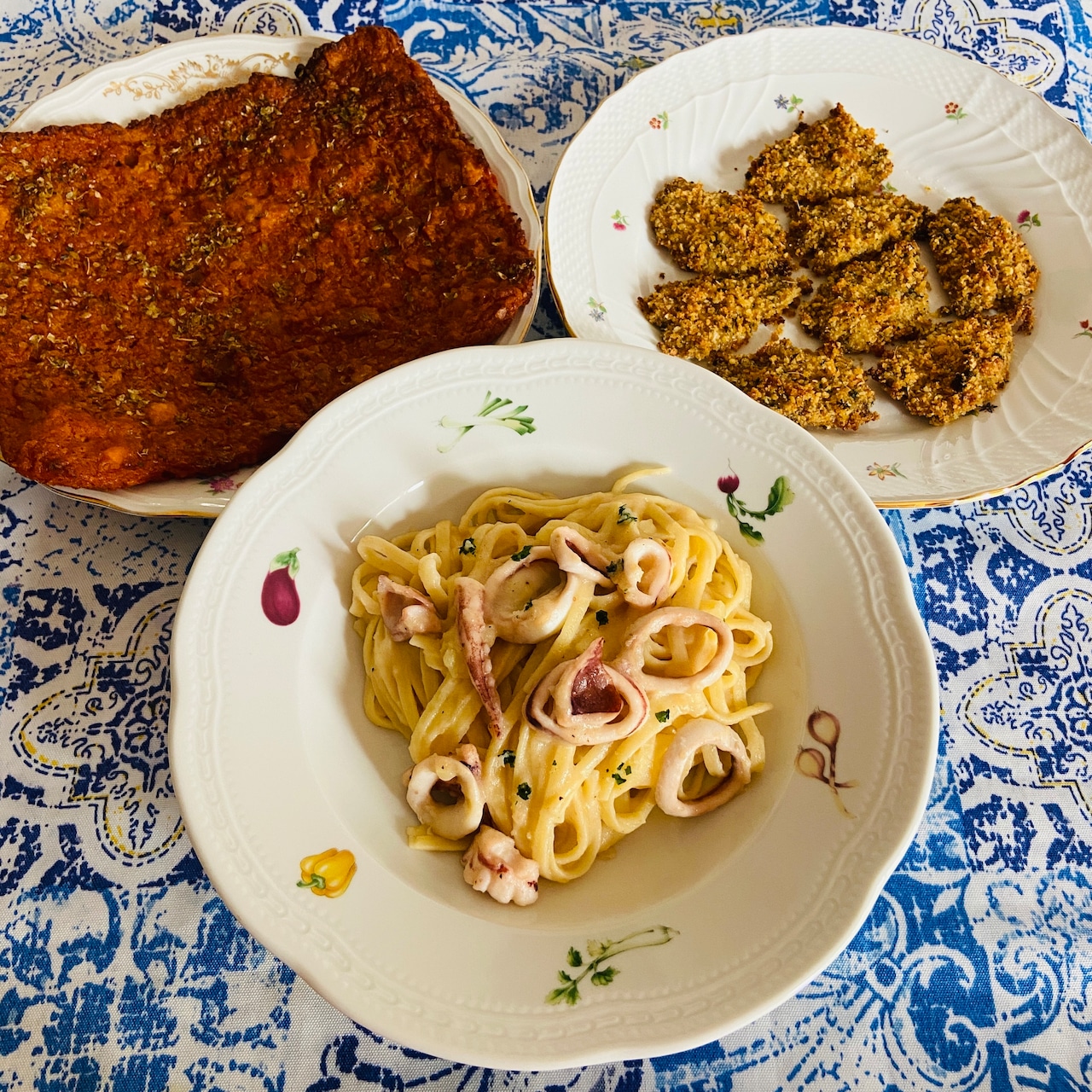 イカとジャガイモクリームのパスタ&トマトのスキアッチャータ