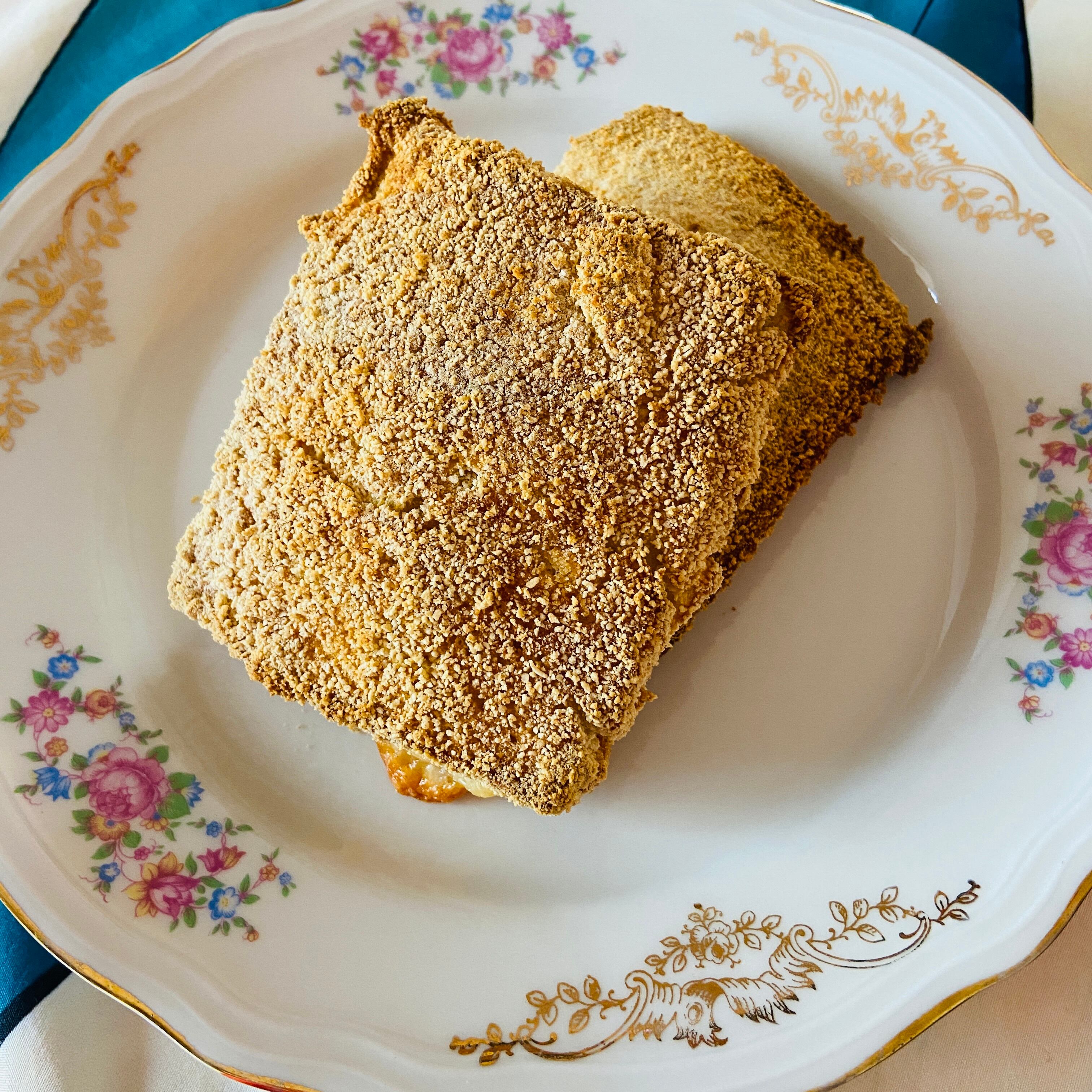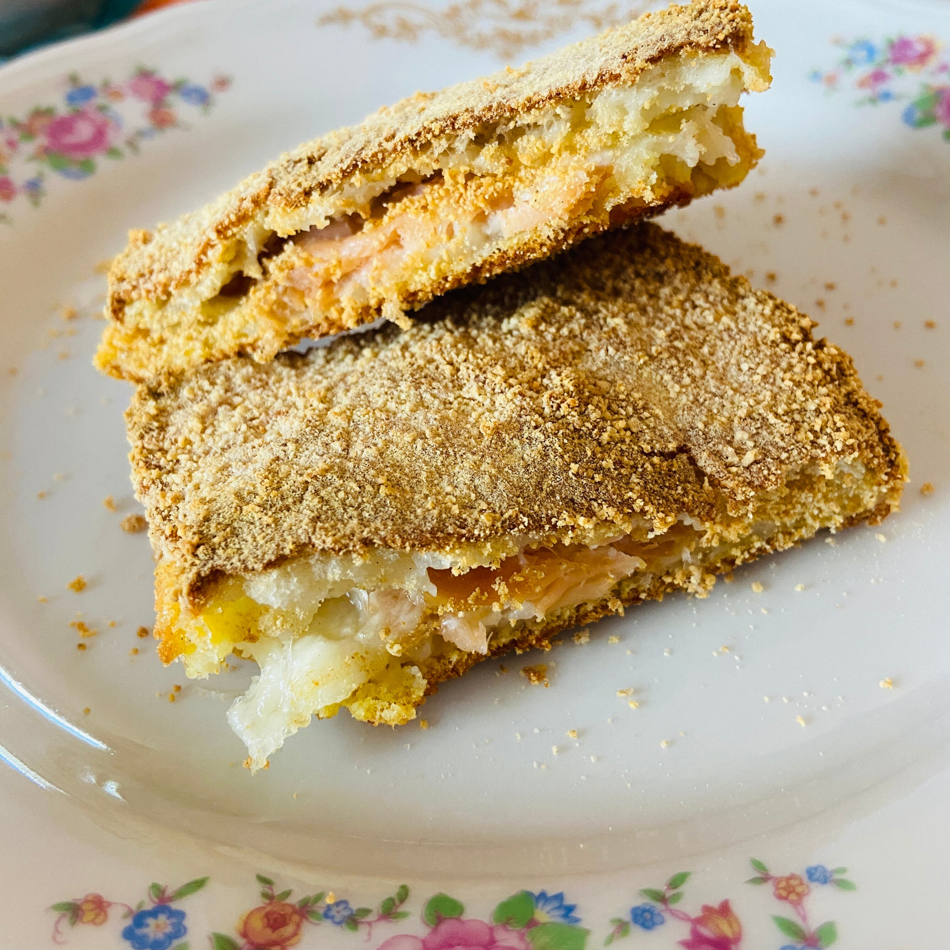 食パンにモッツァレラを挟み、パン粉をまぶしてカリッと揚げます。