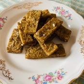 とうもろこし粉と水で作るポレンタを冷まして固めたら、オーブンでカリッと焼き上げます。