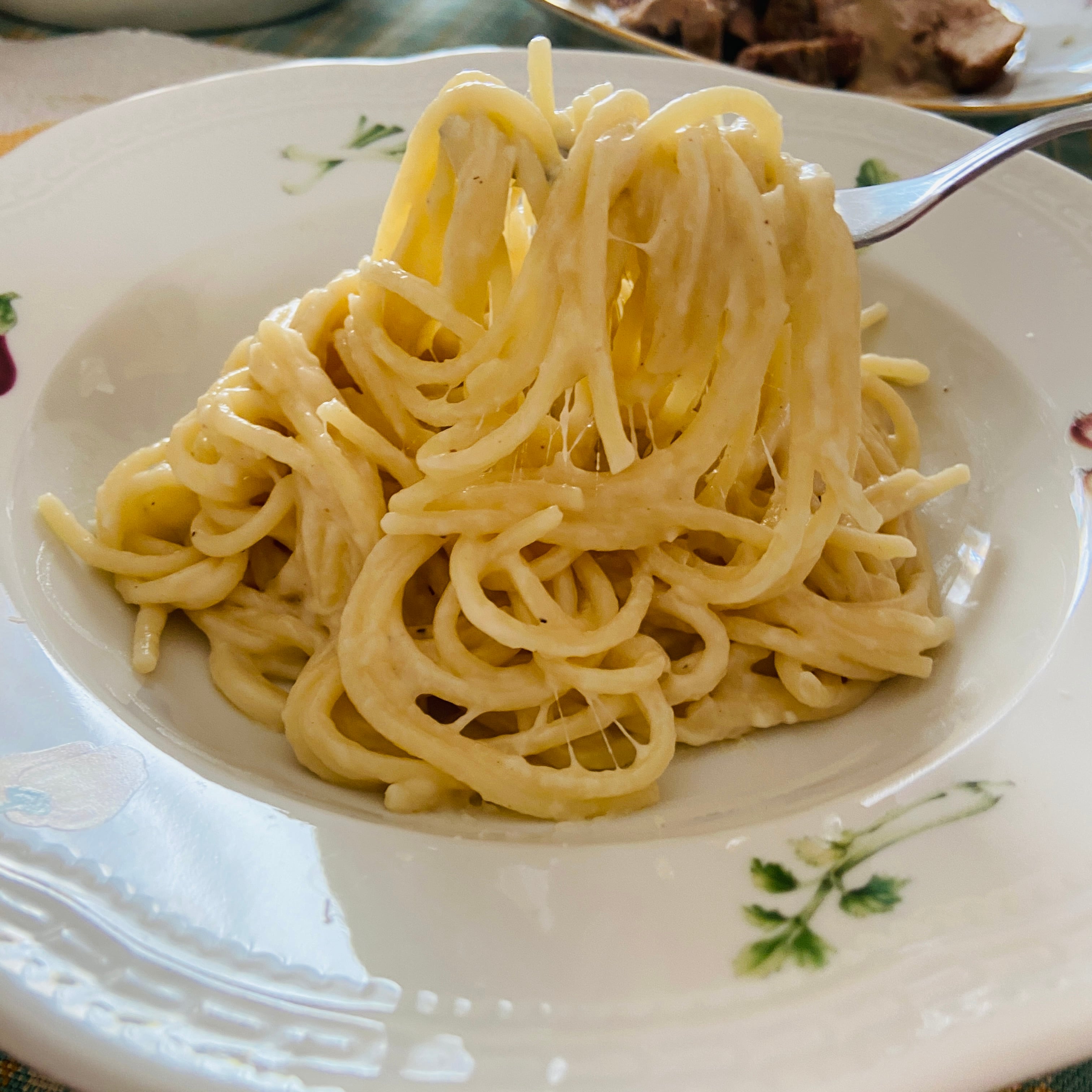 いわゆるバターとパルミジャーノの極シンプルなパスタですが、義母のは格別。