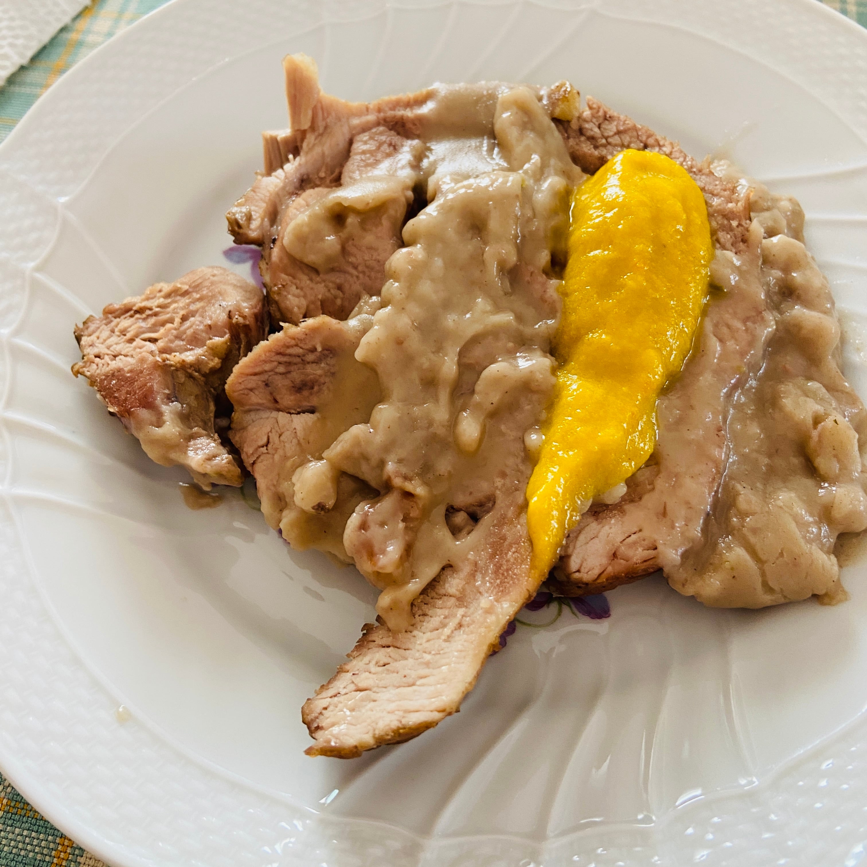 お肉はしっとり、フォークで切れるくらいホロホロに。