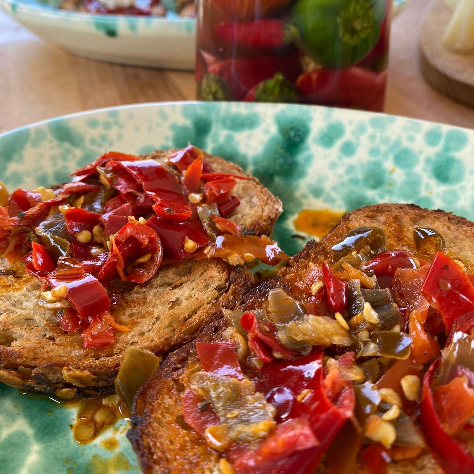 カラブリア州に伝わる唐辛子を使った保存食6種類、マンマのペペロンチーノ、甘辛い郷土ドルチェを、マンマに習います。