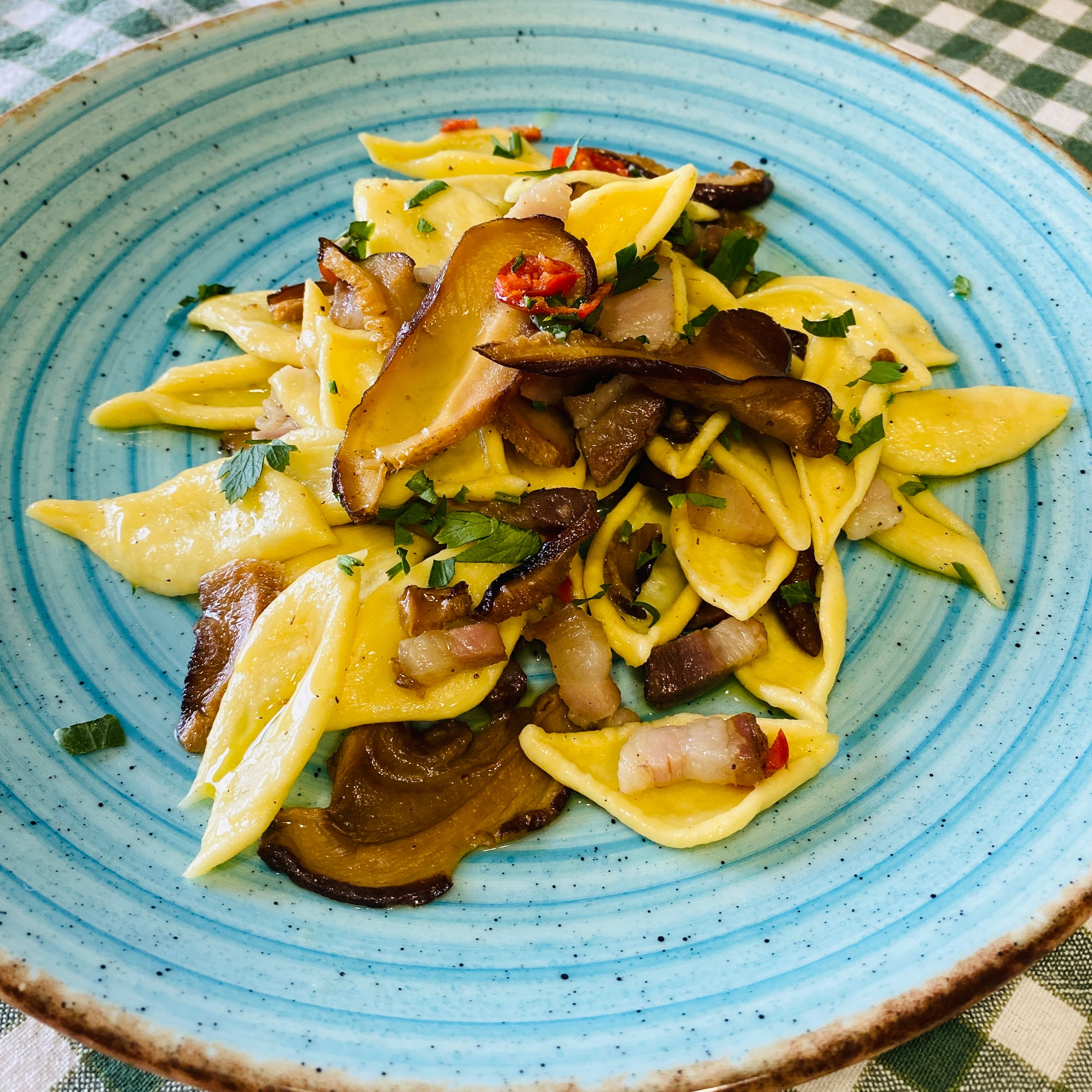 ・フォリオリーノ:セモリナの手打ちパスタ、パンチェッタとポルチーニのオイルソース