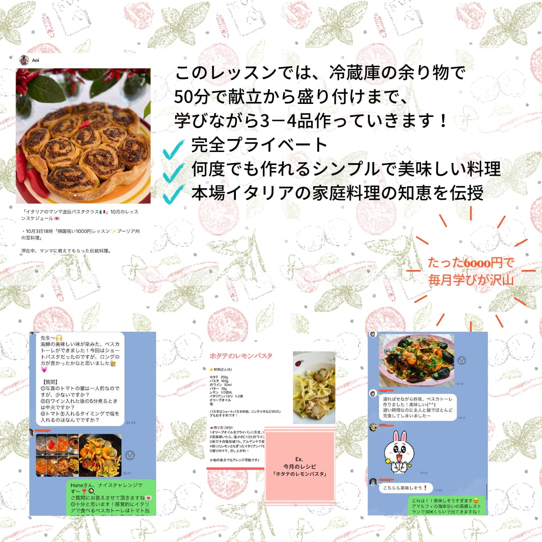 【プライベート】イタリアのマンマ直伝オンライン料理レッスン「今日のごはん」