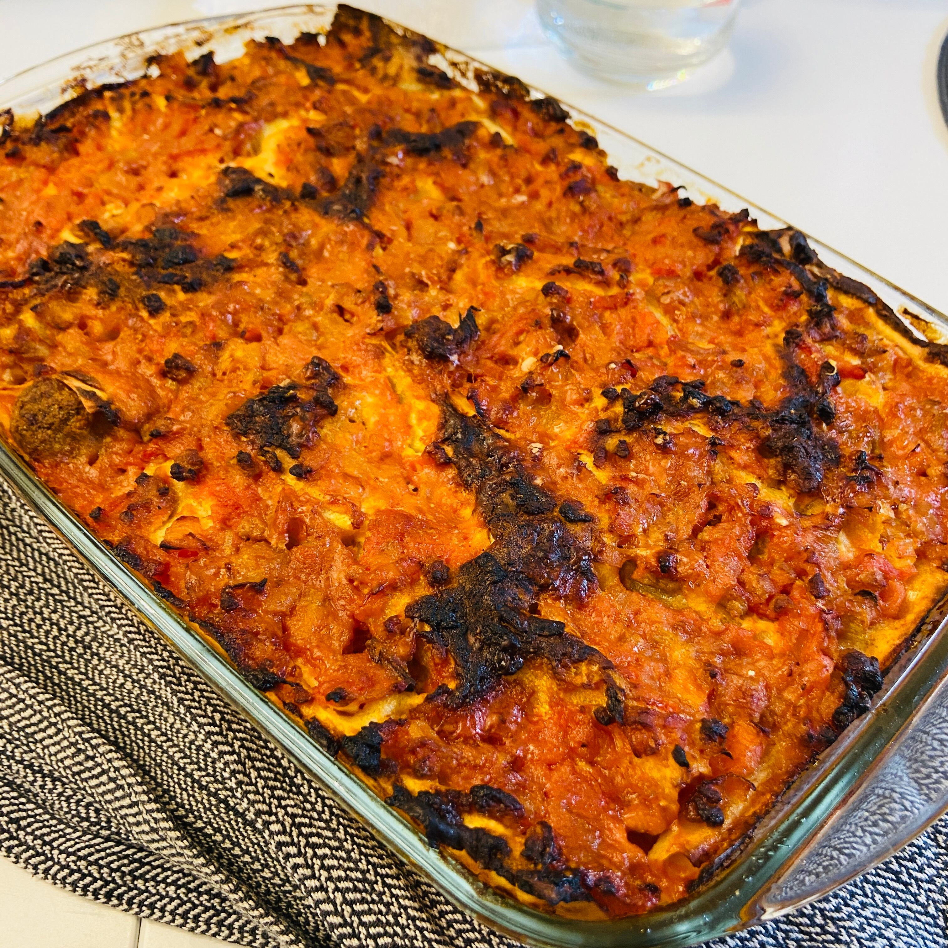 ナポリのラザニアは、野菜の香り高いトマトソースに、旨味たっぷりのミートボールやゆで卵が入ります。
