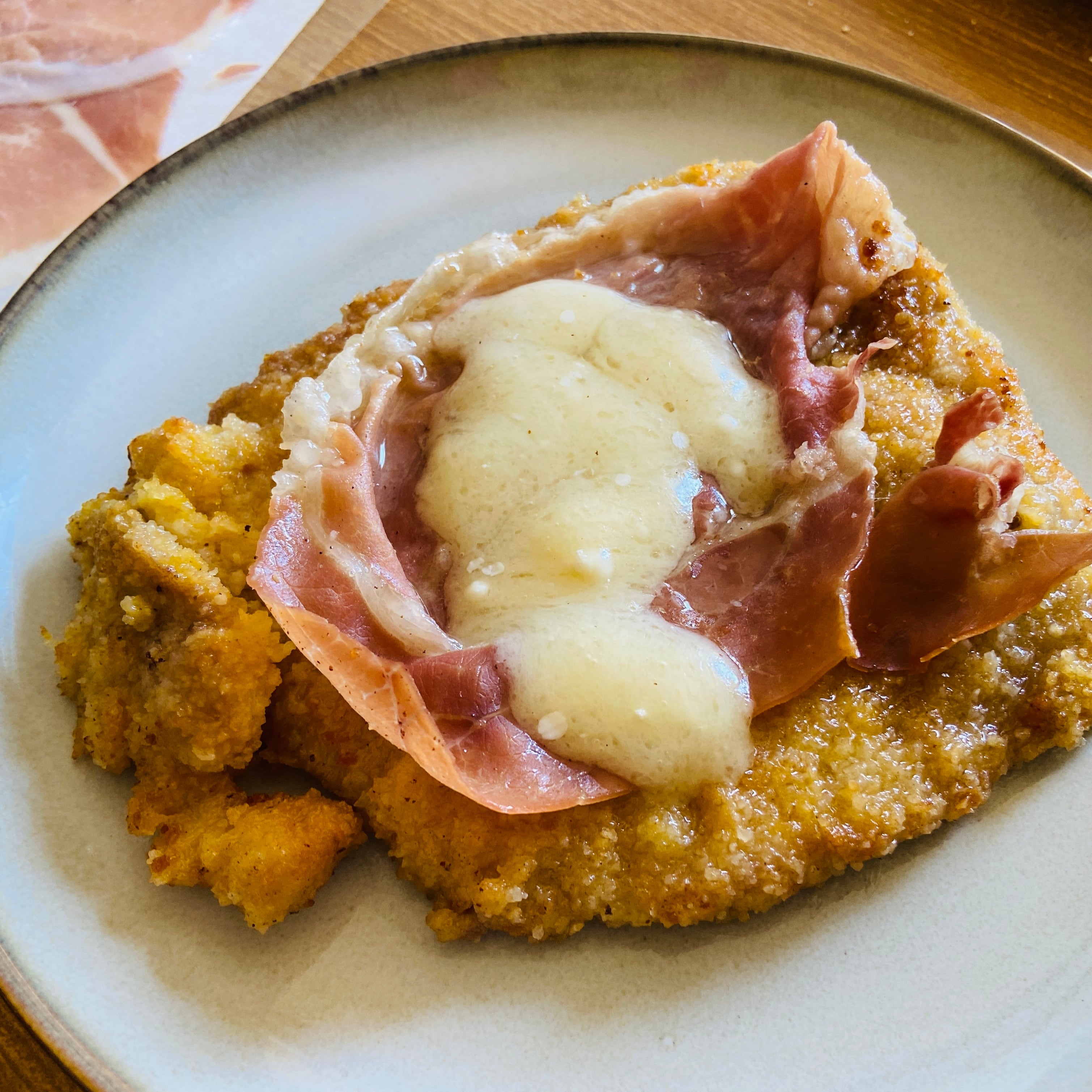 バターで焼き上げたカツレツに、ハムとチーズを重ねて焼き上げる、ボローニャ風カツレツは、街を代表する郷土料理。