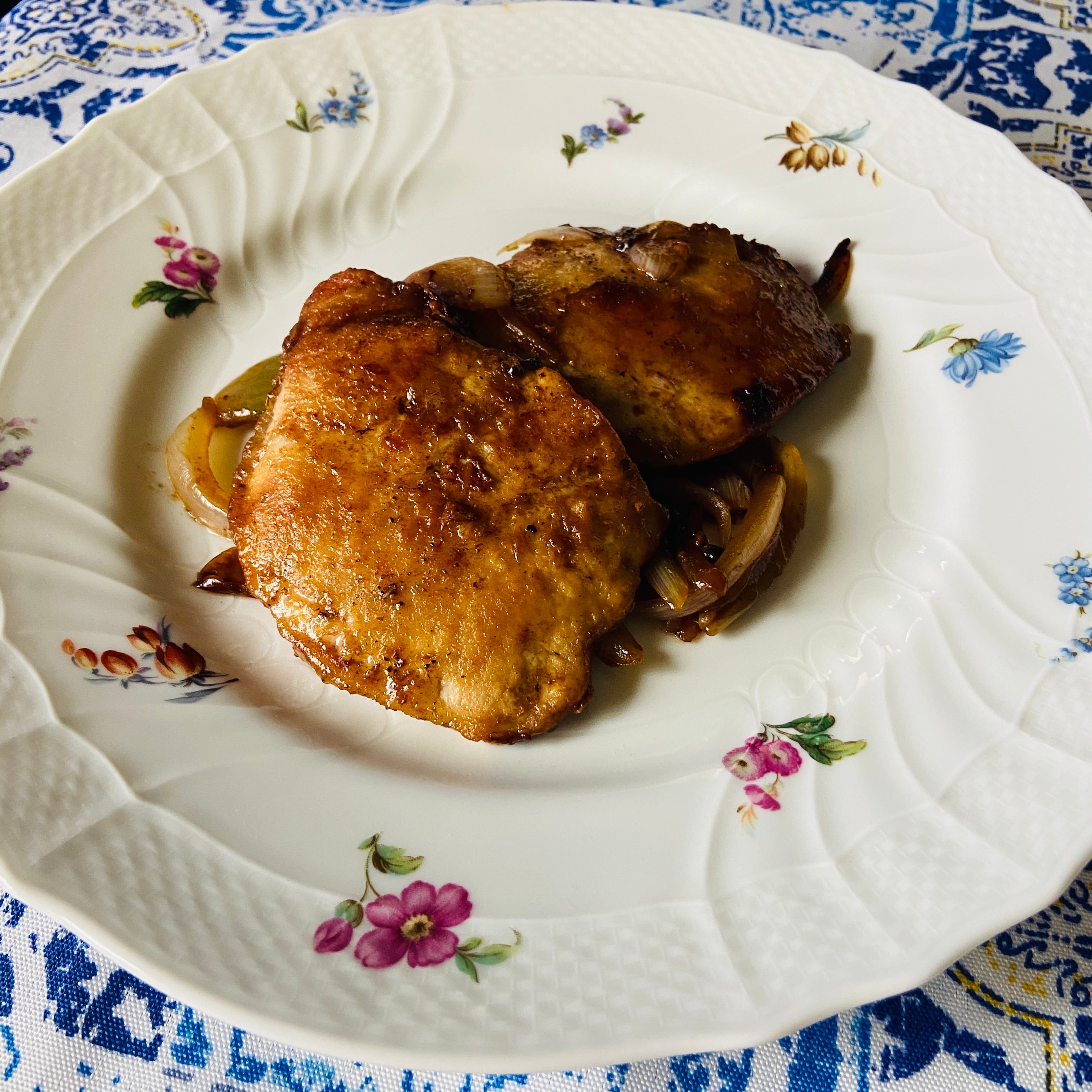 薄い豚肉を軽く焼き、レモンやお酢、少しのお砂糖で味付け。